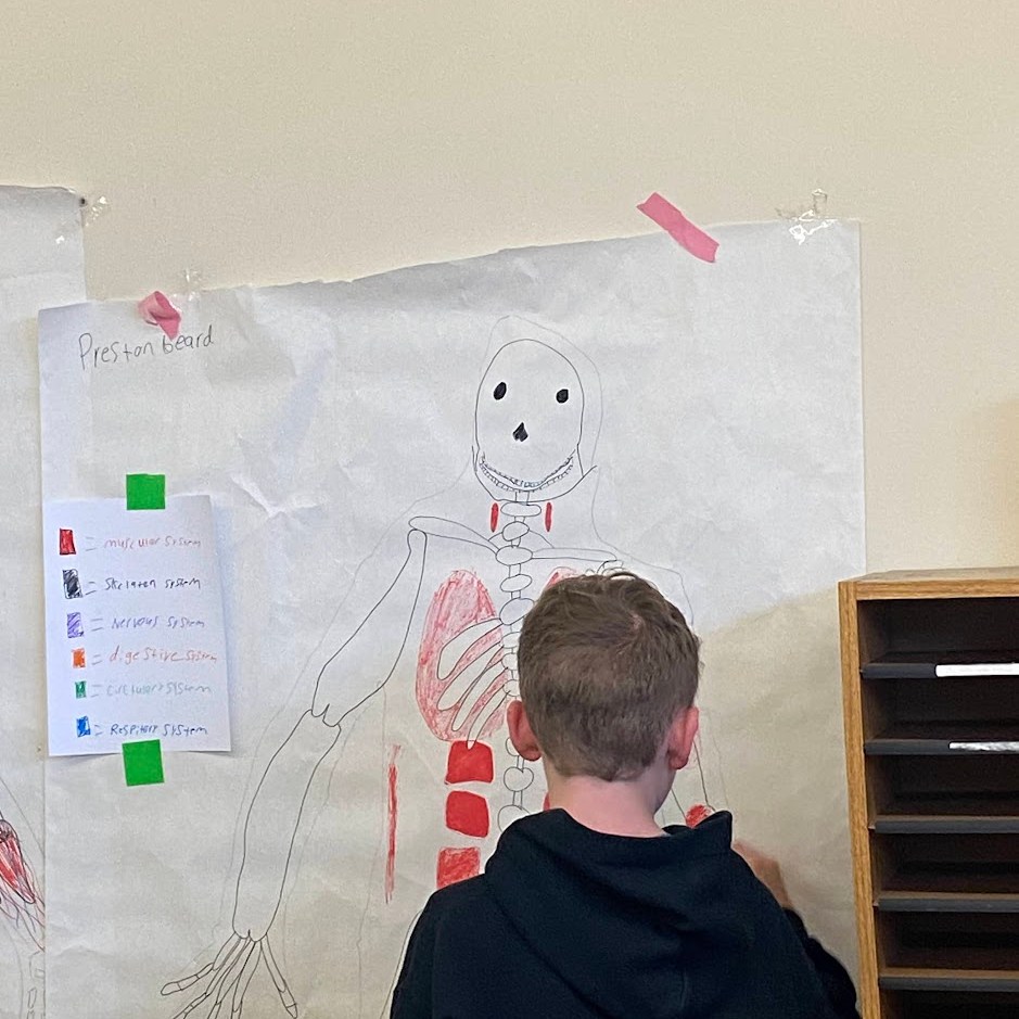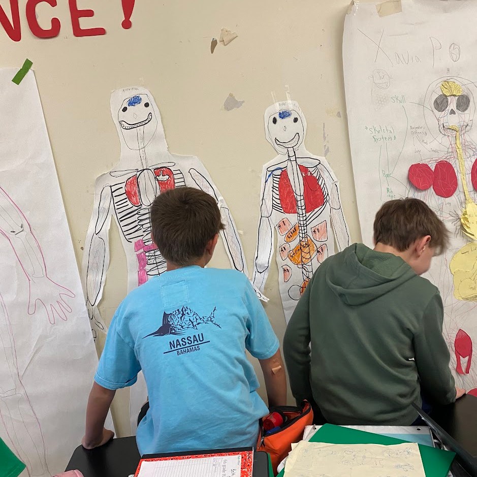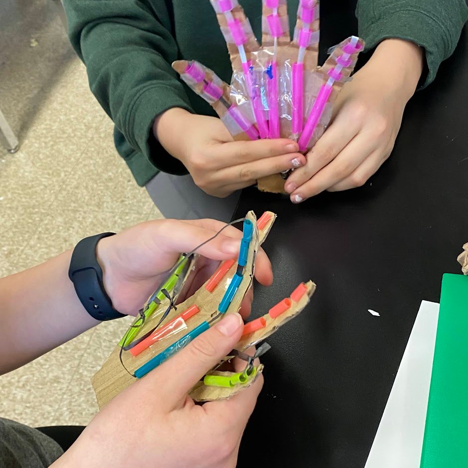 At the end of the session, the classroom shifted toward their final unit projects. Several students worked on drawing the systems of the body and creating robotic hands to further explore tendon, ligament, the muscle connection with flexion and relaxation.