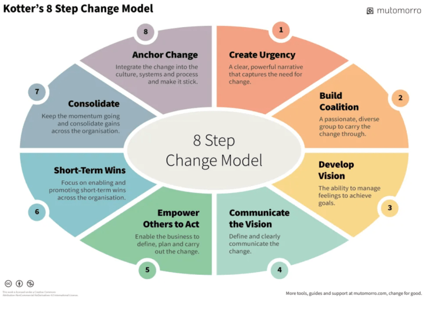 Lasting change doesn’t happen by accident. John Kotter’s change model shows the need for structure, trust, and momentum.