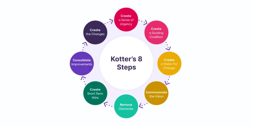 John Kotter’s expanded eight-step model builds on this by showing that lasting change requires collaboration, shared vision, and celebrating small wins along the way. Both approaches emphasize the importance of leaders who listen deeply, communicate clearly, and build trust across differences.