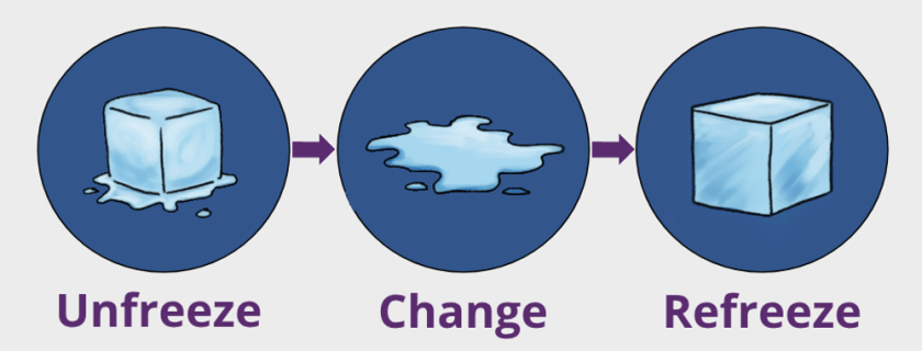 Kurt Lewin’s model for change, built around the steps of unfreezing, changing, and refreezing, reminds us that transformation begins with honest conversations and a willingness to question existing habits.