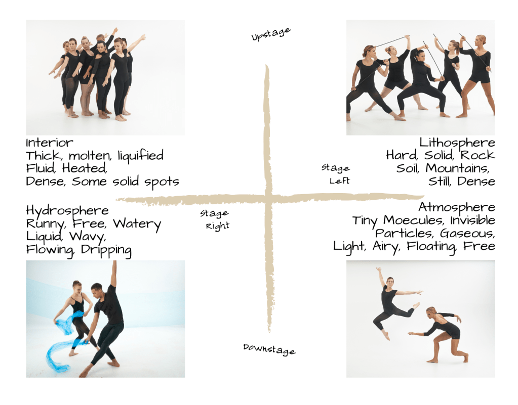 Students begin in one quadrant and improvise movement based on that system.