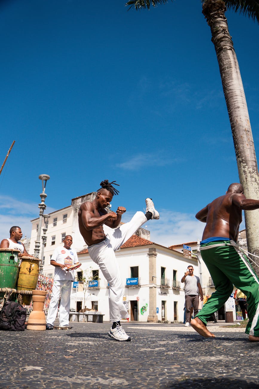 Capoeira was born under oppression in Brazil. Enslaved Africans disguised self-defense as dance. It teaches strategy, awareness, and resilience. Students learn to think while moving and to respond in real time.